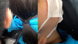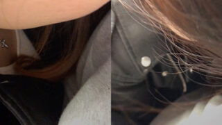 【146】の逆さ撮り。前側から触っていますが、結構ポイントポイント触れると大きく反応しています。多分感じやすい娘なんでしょう。最初は下着の上からおさわりですが、やがて手は下着の中へ。脚動かしてかなり反……