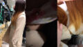 【130】の逆さ撮り。やや熟女寄りのOLらしき被写体ですが、黒パンストはセクシー。パンスト上おさわり→なぜか傘の柄を使ってのおさわりです。生どころかパンティ手マンもなし。女性は足を動かして反応していますが、見てる側としては消化不良。