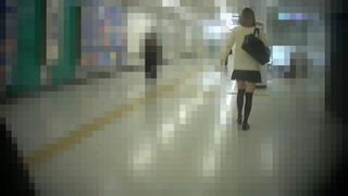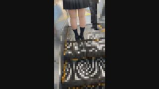 3人目は絶対領域のまぶしいJK。 ヒタヒタと尾行する痴漢さんです。 髪色もかなり明るく、あきらかにギャルJKです。 電車が到着し乗り込みます。 逆さ撮りではピンクの刺繍のエロい下着。 これは高そうな下……