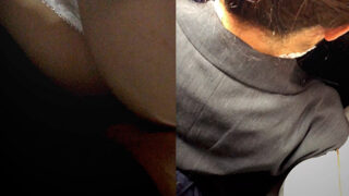 電車を待つ熟女OLを発見。 序盤はスカートの上から。まくり上げにくい? 下着は青のパンティで面積小さめ。陰毛がはみ出ています。 一つ目の駅に到着し、出発後に乳揉みへ。弱めの抵抗‥。 同時にスカートの中……