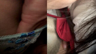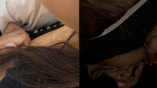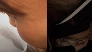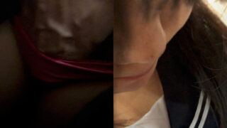 OL美女。スカートまくり上げられパンティ下げられ、半ケツ丸出し。これ尻の割れ目に生チ○コも可能だよなぁ。両手が下のガードに忙しいので、乳は揉まれまくり。乳首つままれてもノーガード。【205】が逆さ撮り……