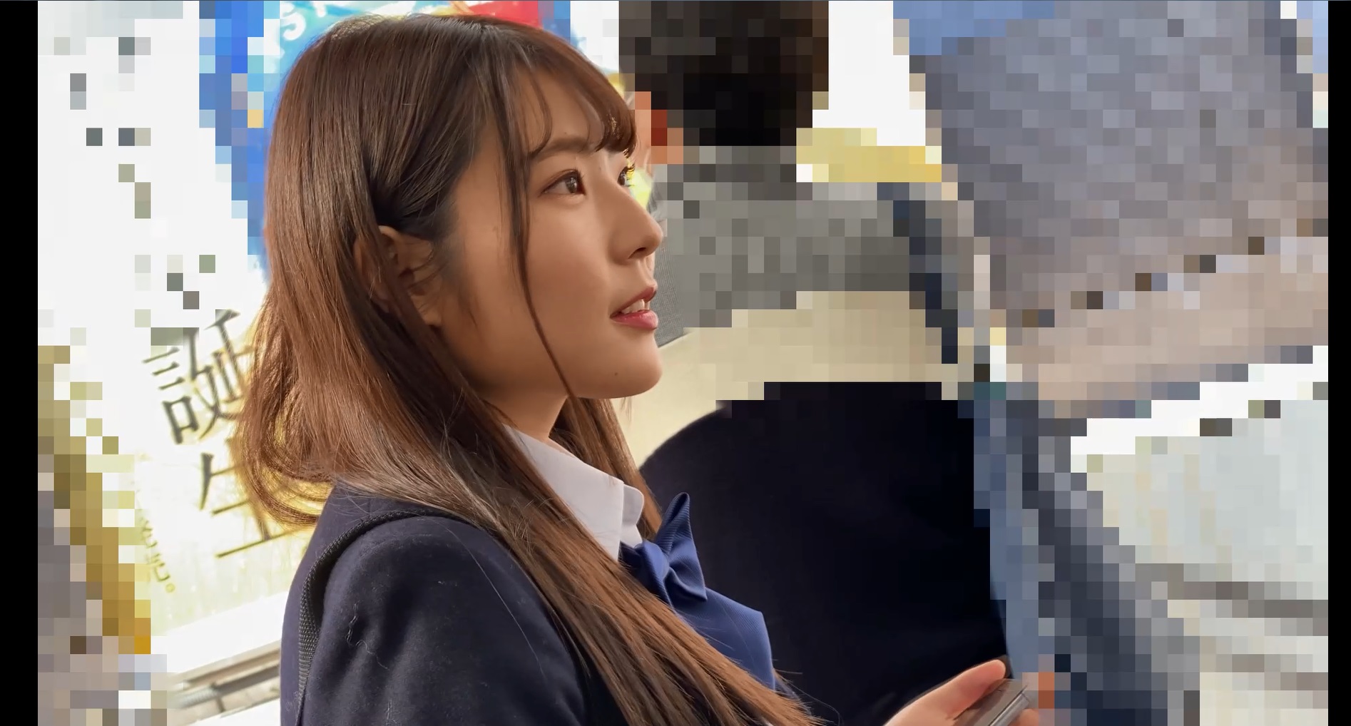 この乳揉み痴漢、ずーっとJKの生乳揉んでいます。