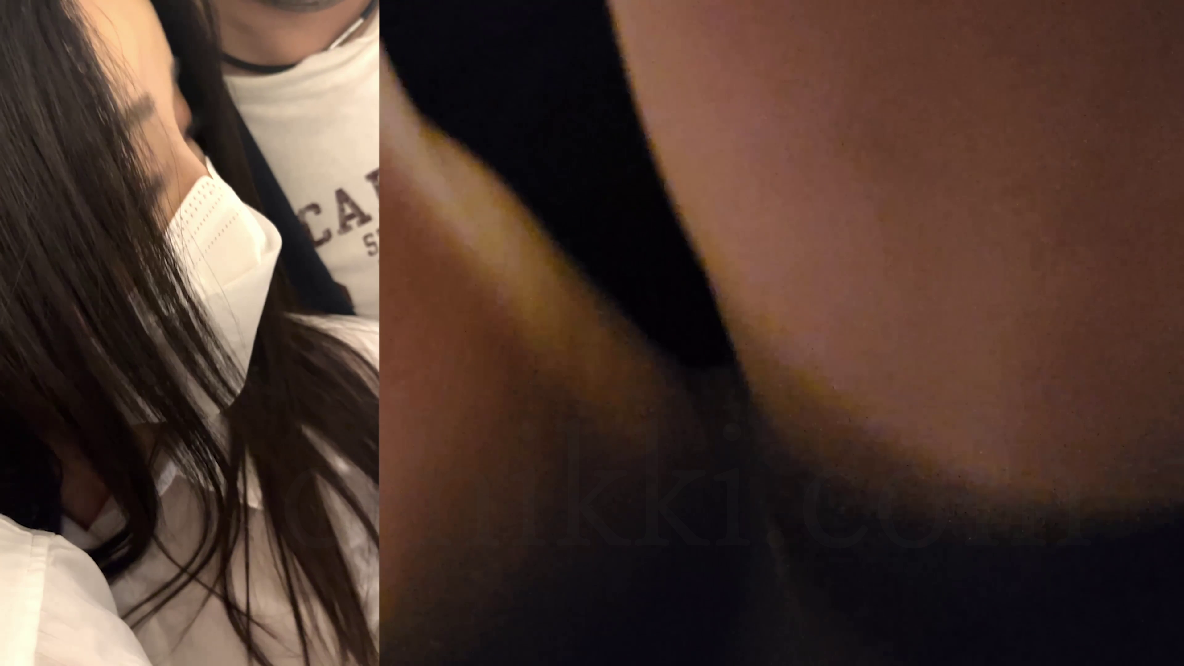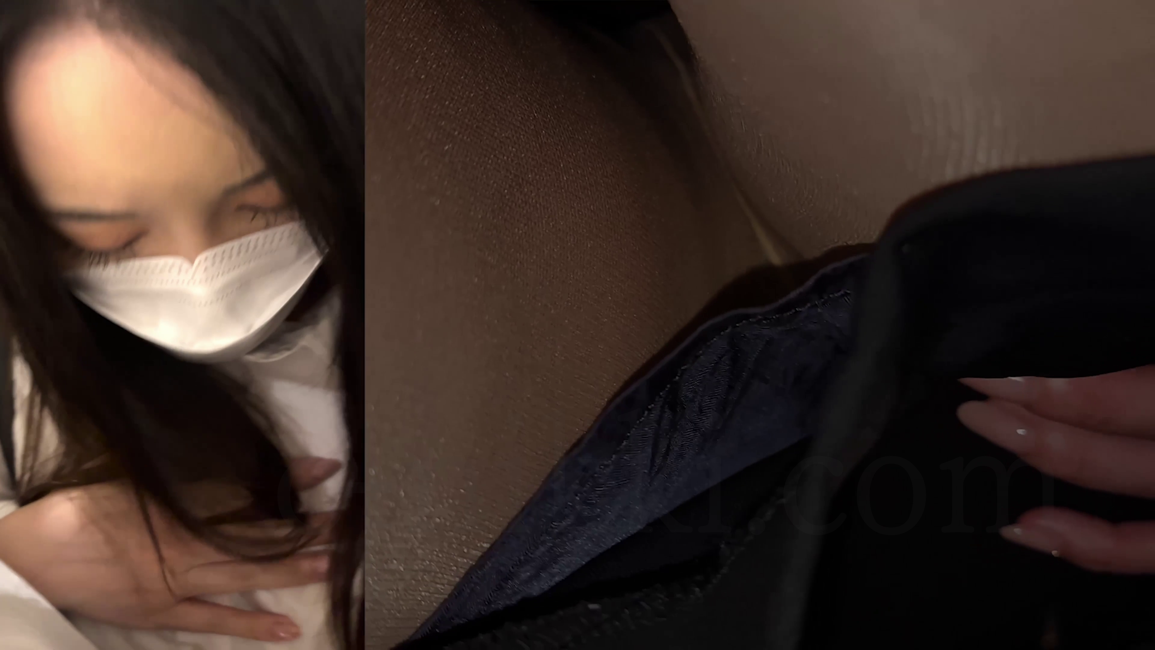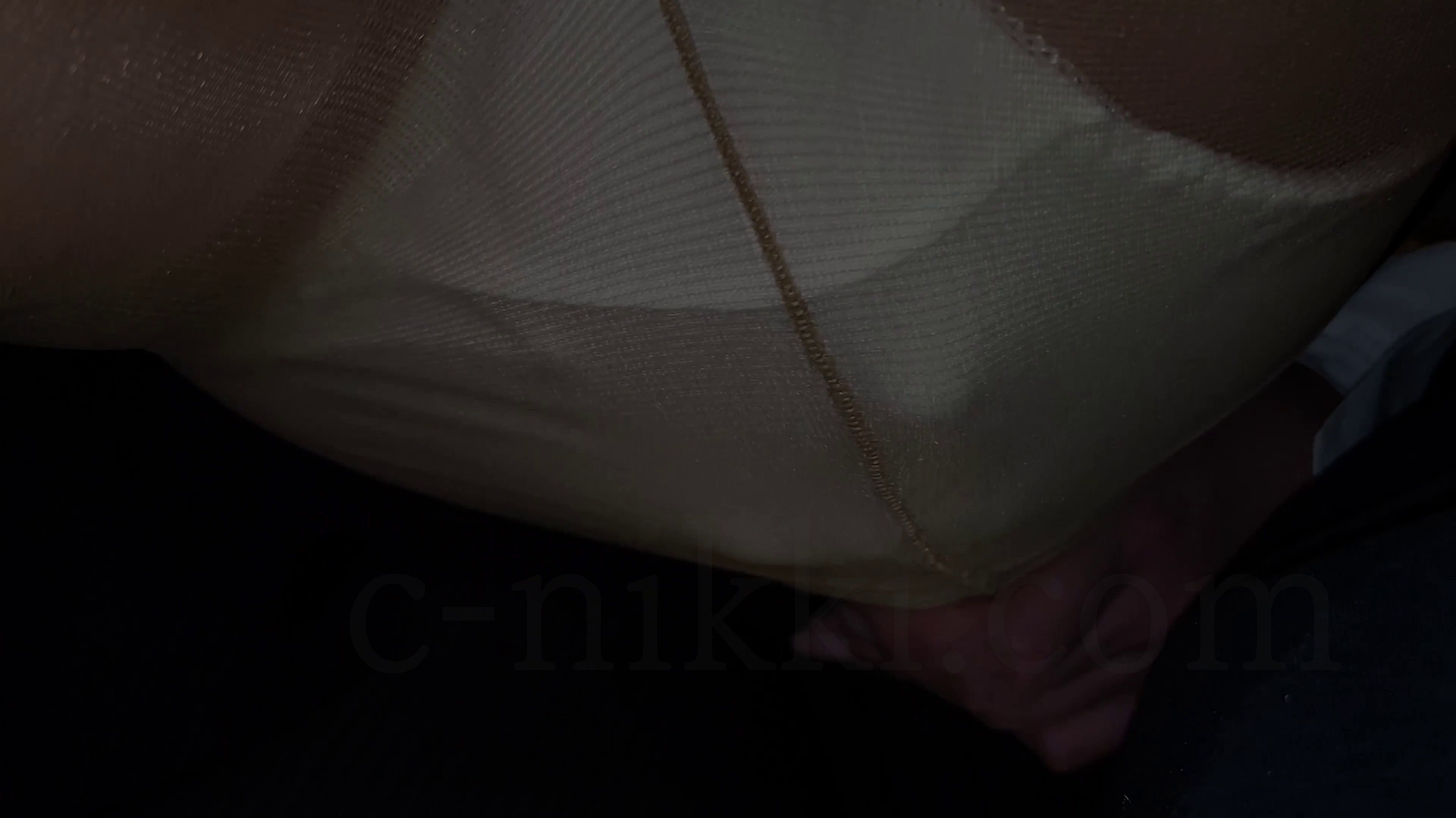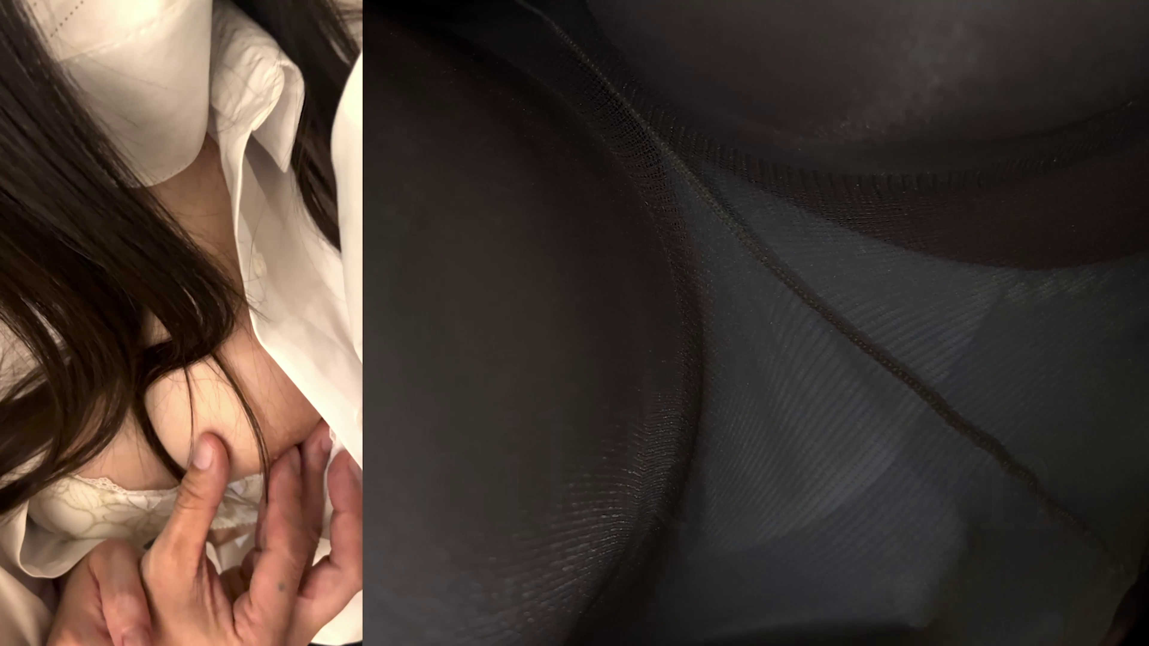 胸元とスカートを守る美人の手。縦爪できれいです。
