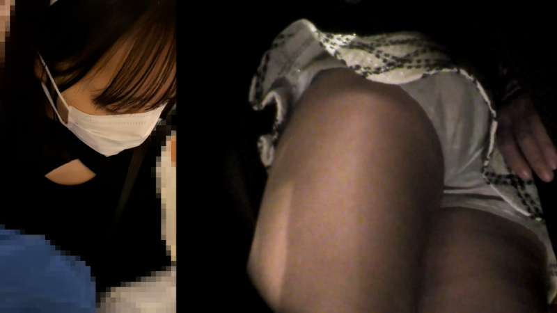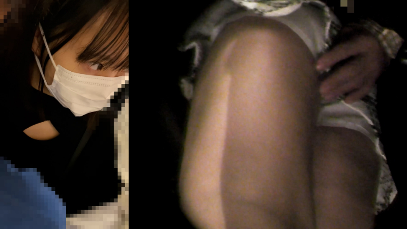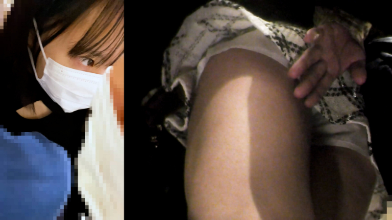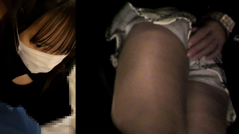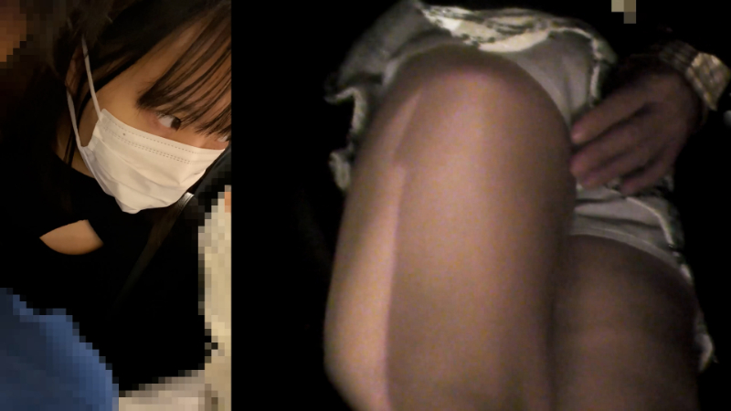 - 服装的にお姉さんに見えますが、作品概要から過去にも被写体となったことのあるJKとのこと。おしゃれをして、デートに行く途中でしょうか。顔はマスクをしているものの、正面から見るとかなり幼く見えます。