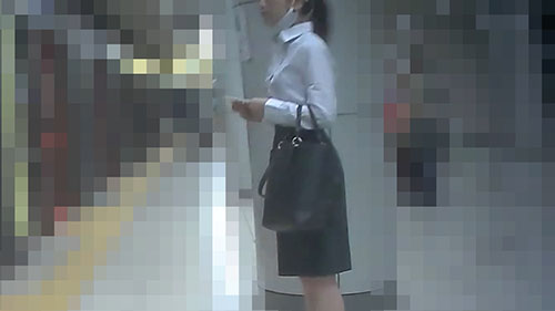 スカートをずり上げていくと、痴漢の手を押さえつけるOLさん。