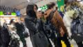 一駅目到着の出発後からスカートをまくり上げて尻のお触り開始。