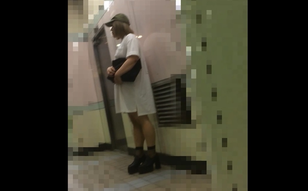 電車を待つデカT厚底の金髪娘。