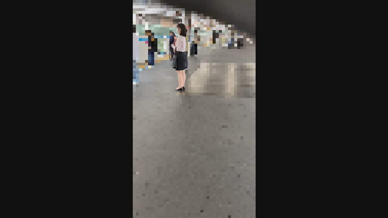 ホームで立つ姿を後ろから見ると、ブラが透けています。